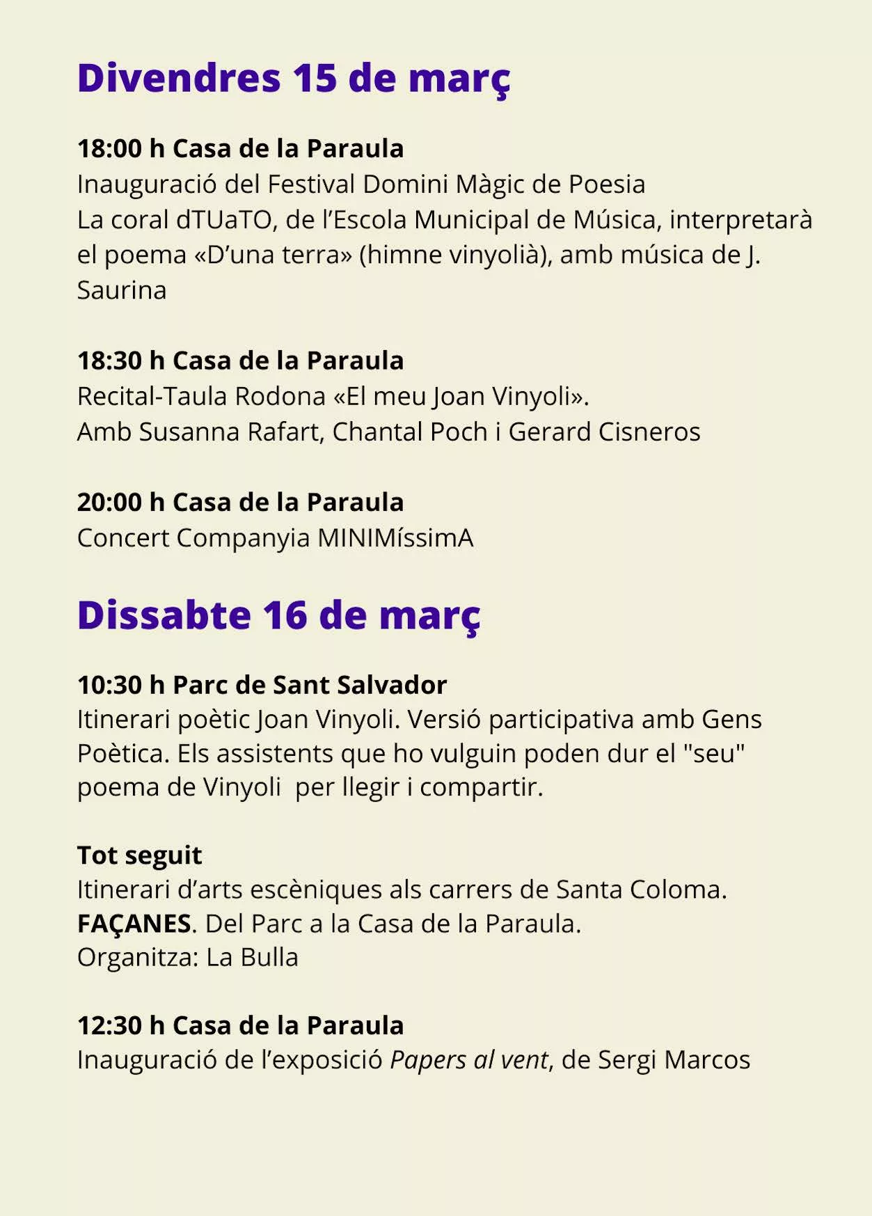 tots tres actes es celebraran a la Casa de la Paraula (Sta. Coloma de Farners)