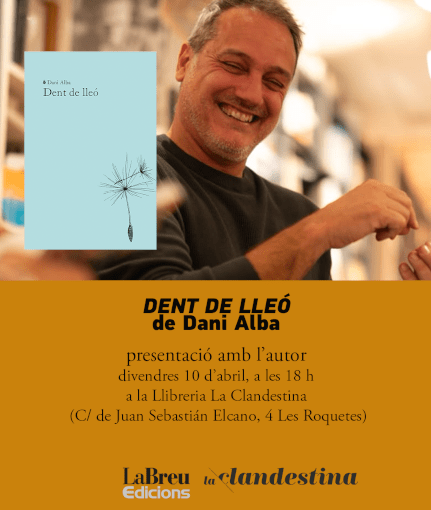 DENT DE LLEÓ de Dani Alba a La Clandestina de Roquetes (10.04.26) ester 6 dies ago Divendres 10, a les 18 h, presentació de DENT DE LLEÓ de Dani Alba a la llibreria La Clandestina de Les Roquetes