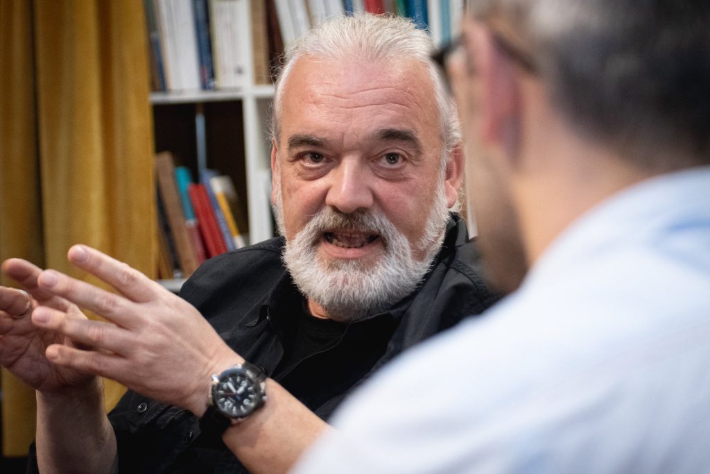 “una novel·la en què consisteix? és fer un homenatge a Sherezade, per tant una novel·la ha de ser un seguit d’històries el més apassionades possibles, el més divertides possibles,aquesta idea d’una història dintre d’una història que una novel·la sigui una col·lecció d’històries, em sembla que és bàsica, enllaça amb la meva idea del que ha de ser una novel·la. Per tant, que hi hagi una festa, que hi hagin subtrames, que hi hagin capes, gairebé em surt amb naturalitat”