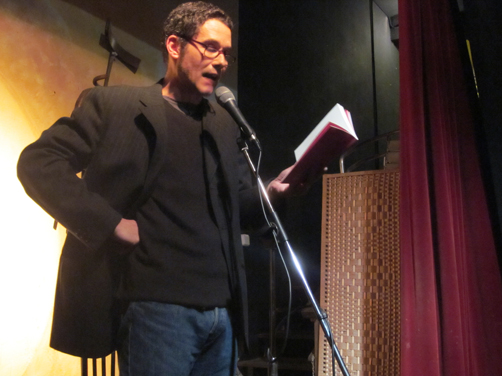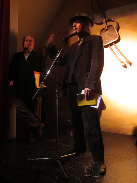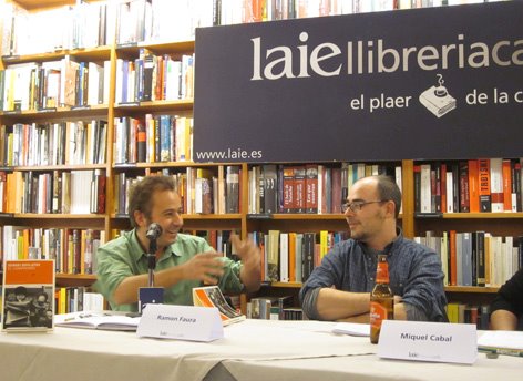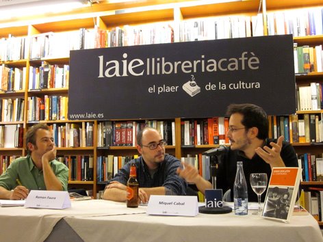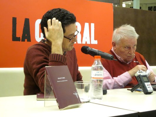 Max Besora, autor de “Vulcano” i l’editor Miquel Adam fent terúlia a La Central del Raval (20.03.12)