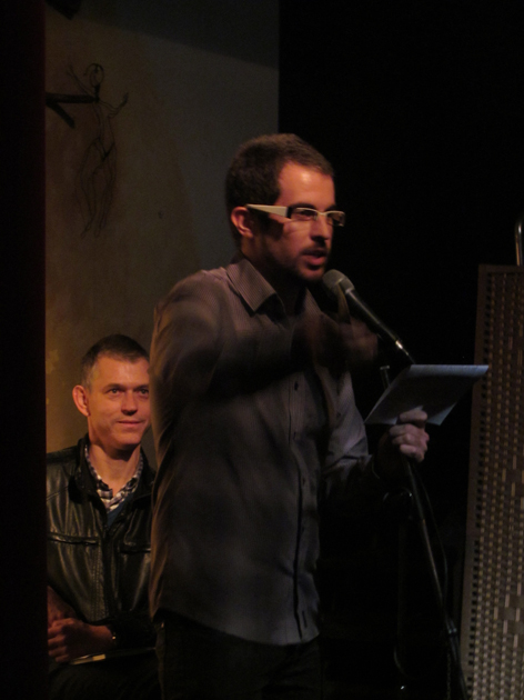 Miquel Àngel Codes, director del festival, fent d’amfitrió a Liberis Liber 2014 en la presentació de BIRNAM de Víctor Sunyol (04.10.14)