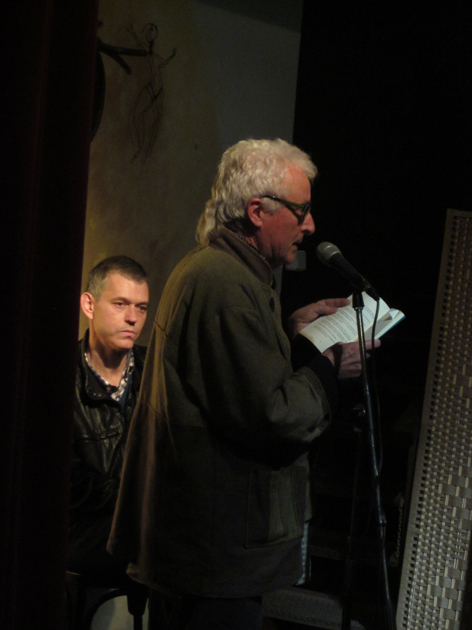 Josep-Ramon Bach , acompanyat de Jaume Comas recitant “L’Enunciat” a la Biblioteca de Flix (24.02.12)