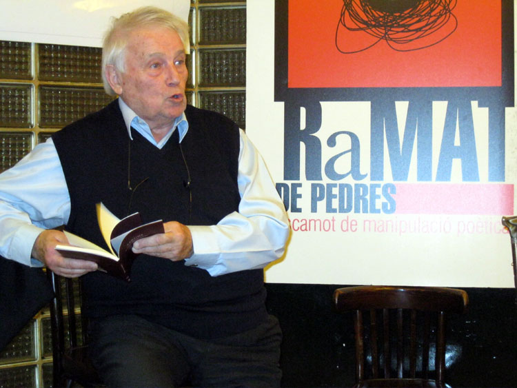 Jordi Condal i Jaume Sobrevals, dos dels integrants de Ramat de pedres, van protagonitzar una presentació de l’obra de Garriga en què alternaven la lectura poètica amb el comentari apassionat de la poesia de l’autor local. Desteixint fil a fil l’obra poètica de Francesc Garriga, Condal i Sobrevals van fer un repàs pels temes habituals del poeta, des del retorn al a infància a la por, la solitud o la mort; des de la mentida com element essencial de la vida a la doble realitat de la presència i la possible falsedat de Déu.