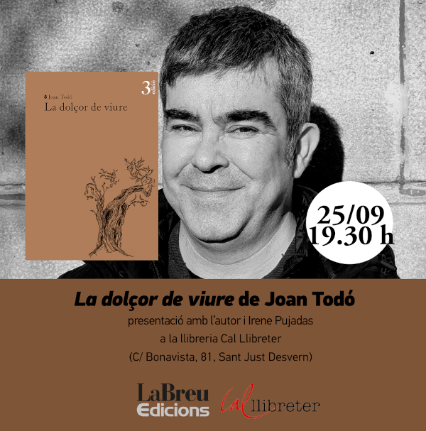 LA DOLÇOR DE VIURE de Joan Todó a Cal Llibreter (25.09.25) ester 1 mes ago Dijous 25, a les 19.30 h, a Cal Llibreter La dolçor de viure de Joan Todó amb Irene Pujadas