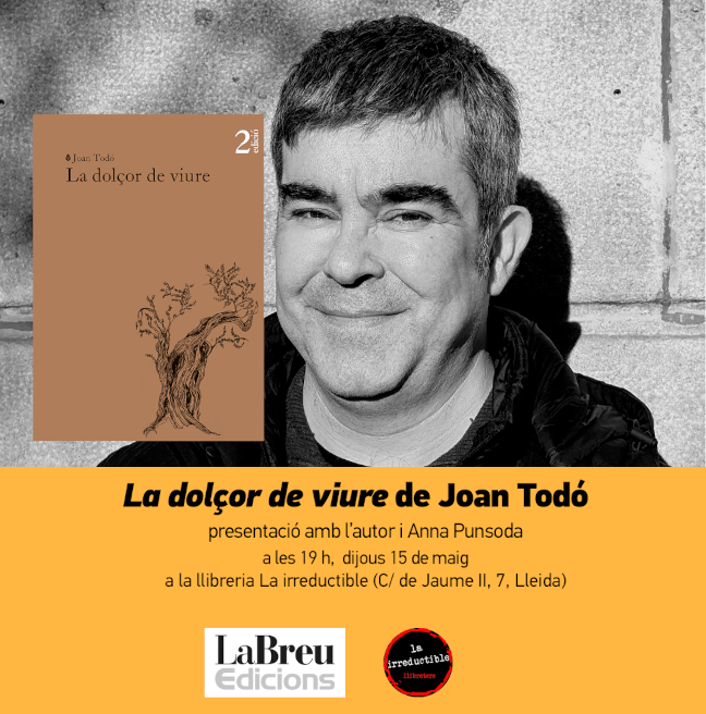 LA DOLÇOR DE VIURE de Joan Todó a La Irreductible (15.05.25) ester 6 mesos ago Divendres 15, a les 19 h, presentació de LA DOLÇOR DE VIURE de Joan Todó amb l’autor i Anna Punsoda a La Irreductible