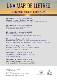 Divendres 29, a les 19 h, dins el cicle “Un mar de lletres, capvespres literaris a bord 2025”