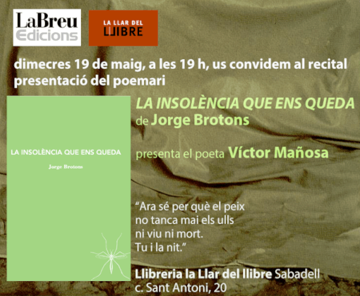 dimecres 19 de maig, a les 19 h, presentació del poemari