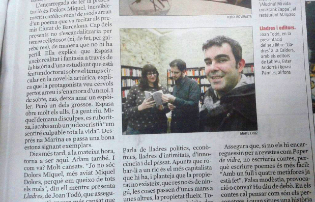crònica de Llúcia Ramis a la presentació de Lladres de Joan Todó a la llibreria Calders el 23 de febrer de 2016: