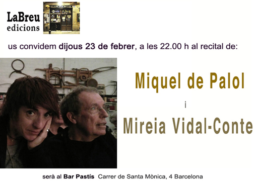 dijous 23 de febrer, dins el cicle poètic del Bar El Pastís recital de