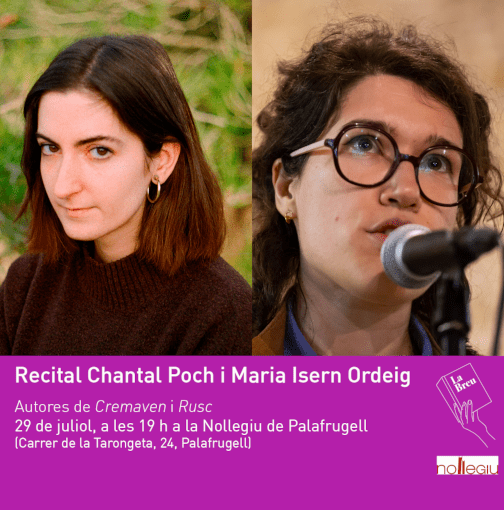 Dissabte 29, a les 19 h, recital presentació de Chantal Poch CREMAVEN i Maria Isern RUSC a la NoLlegiu de Palafrugell (c/Tarongeta, 24 Palafrugell).