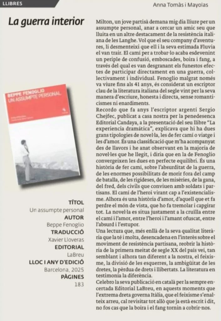 UN ASSUMPTE PERSONAL de Beppe Fenoglio al3deVuit (30.12.25)